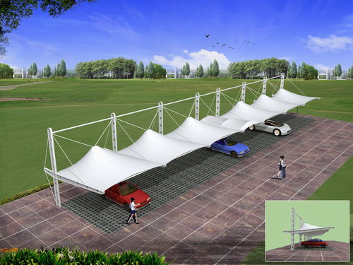 膜結構,又叫張拉膜結構(Tensioned Membrane structure),是以建筑織物(即膜材料)為張拉主體,與支撐構件或拉索共同組成的結構體系,它以其新穎獨特的建筑造型,良好的受力特點,成為大跨度空間結構的主要形式之一。膜結構鋼結構的 主要特點有“透光性”、“節(jié)省能源”、“聲學效果”、“耐用性”、“設計性”。鑒于膜結構的結構自重輕,結構簡單可靠,具有良好的造型和自潔性,施工簡單 快捷,因此適用于各種場合使用,如大型體育館、運動場、采光屋面、展覽館、展示廳、各種公路收費站、加油站、門廳、車棚、雨棚、休閑公園等。