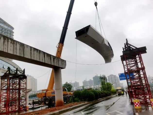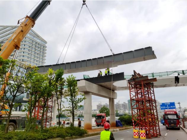 據(jù)了解,該人行天橋設(shè)計(jì)為蝴蝶翼型結(jié)構(gòu),橋面寬度5米,最大長(zhǎng)度72米,路面高度8.5米,最大高度12米,是連接“城市之門(mén)”四座塔樓的空中走廊。為保證弧線精度,所有下料全部采用電腦數(shù)控一次成型。