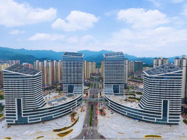 “‘城市之門(mén)’的設(shè)計(jì)靈感來(lái)源于蝴蝶,從高處俯瞰整個(gè)項(xiàng)目,就像一只振翅飛翔的蝴蝶,連接大樓的天橋就像蝴蝶的身軀?!敝需F四局凱里未來(lái)城項(xiàng)目書(shū)記程恩來(lái)解說(shuō)道。