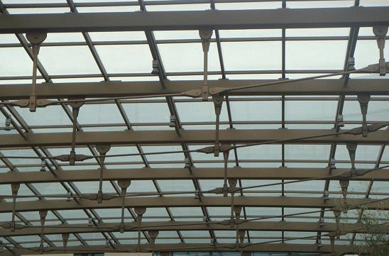鋼結(jié)構(gòu)玻璃雨棚鋼架,可根據(jù)客戶的需要選擇使用:工字鋼、槽鋼、圓鋼管、方鋼管、T型鋼、H型鋼等。駁接爪選 用304不銹鋼材質(zhì)不生銹。玻璃根據(jù)實(shí)際情況可選用6+6或8+8的夾膠鋼化玻璃。鋼結(jié)構(gòu)防腐使用優(yōu)質(zhì)環(huán)保氟碳油漆,可確保鋼結(jié)構(gòu)20年不生銹、不退色。 鋼結(jié)構(gòu)玻璃雨棚采用不銹鋼或鋼質(zhì)材料、夾膠鋼化玻璃制作而成。鋼質(zhì)材料表面采用熱鍍鋅、氟碳噴涂或靜電粉未噴涂工藝,特點(diǎn)是經(jīng)久耐用、明亮、美觀、大方, 廣泛用于銀行、酒店、賓館等大型公共場(chǎng)所工程的配套設(shè)施。